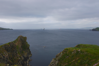 The Shetlands is a subarctic archipelago of Scotland that lies north-east of mainland Britain. The islands lie some 80 km (50 mi) to the northeast of and 280 km (170 mi) southeast of the Faroe Islands and form part of the division between the Atlantic Ocean to the west and the North Sea to the east. We sailed from Kirkwall in the Orkneys to Lerwick, capital of the Shetlands and arrived around 7:00AM. The skies were grey for the most part but there was no rain and we could even see “tinges of blue” - indicating we would probably have a pleasant day. Lerwick seemed to be a very pretty town from our vantage point on the boat - a feeling that would be proven correct in the days to come.