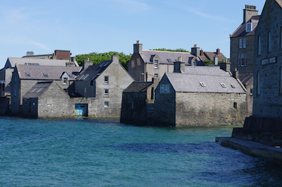 Lerwick is Shetland's only town, with a population of about 7,500 - although about half of the islands' 22,000 people live within 10 miles of the burgh. It is a bustling, cosmopolitan seaport with services and amenities only usually found in much larger places on the British mainland. The extensive leisure and entertainment facilities provide warm hospitality to visitors. The old waterfront is thronged with pleasure boats, visiting yachts, historic craft and working fishing boats. There's a variety of lively bars and clubs, ranging from popular "theme" bars to more traditional hostelries. We found Lerwick to be charming and its inhabitants very friendly. I would have no trouble accepting a posting for a significant period of time there. I found the "lodberries" to be especially interesting - these were houses and warehouses sitting on their own piers so that goods could be loaded and unloaded directly from the boats. Commercial Street and its environs retain a charm seldom seen elsewhere these days. It offers a wide range of fascinating small shops and is also home to Lerwick's Tourist Centre.